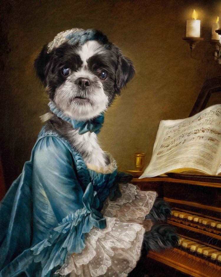 In the small fishing port of Brixham, England, Karen McIntosh assembles digital caricatures of pets. “I am a real fan of the dark, moody images of the Old Masters, and love recreating this ambience in my work,” she says. She blends images and adds shadows and brush strokes in Photoshop for a painterly feel to works printed on high-quality matte paper. “It’s so much fun creating the composition around an animal’s expression or breed, and I welcome a challenge,” says McIntosh, who has made portraits of llamas, mice and horses in addition to many dogs and cats. (www.etsy.com/shop/YourPetsPawtraits )