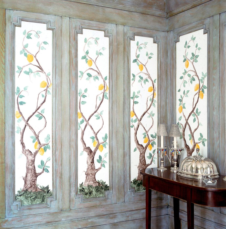 What was wonderful about stenciling and stamping was that it allowed us all with little or no artistic talent to create images on our walls. And what fun we had. Panels could be decorated with lemon trees, vines swathed over every door frame, and is there anyone who did not stencil a border around their child’s nursery? I don’t think so.