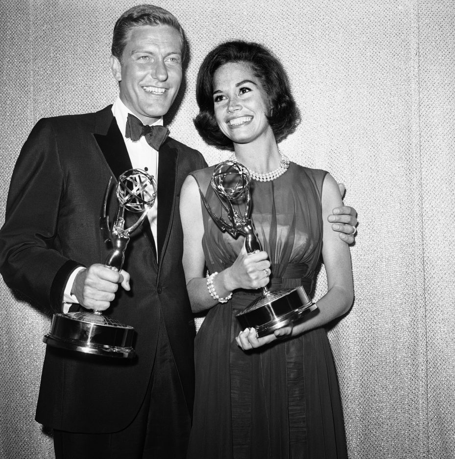 Moore gained fame in the 1960s as the frazzled wife Laura Petrie on “The Dick Van Dyke Show.” In the 1970s, she created one of TV’s first career-woman sitcom heroines in “The Mary Tyler Moore Show.”
