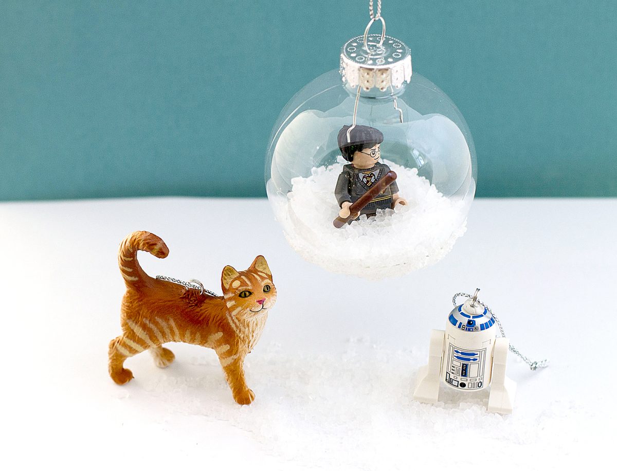 Like many families, we buy a new ornament each year, and I often seek out something that represents my son’s current interests, in hopes that he’ll enjoy looking back as an adult and remembering the year he loved spaceships or Legos. (OK, the Legos have lasted more than a year, and if it were up to him, the whole tree would be covered in plastic bricks.) Finding such ornaments can be tricky, however, and expensive. So this year I looked around for ways to turn his existing toys into ornaments.