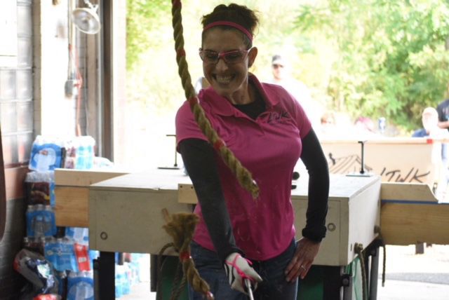 Nicole Warden chopping a rope in a blade sports competition.