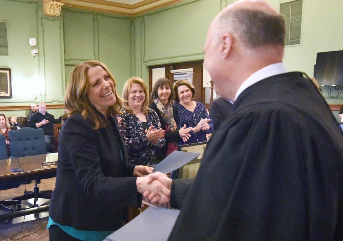 Jennifer Schiedenhelm and other CASA volunteers took an oath to perform the duties assigned to advocates to the best of their abilities before Washington County Judge Michael Lucas Friday.