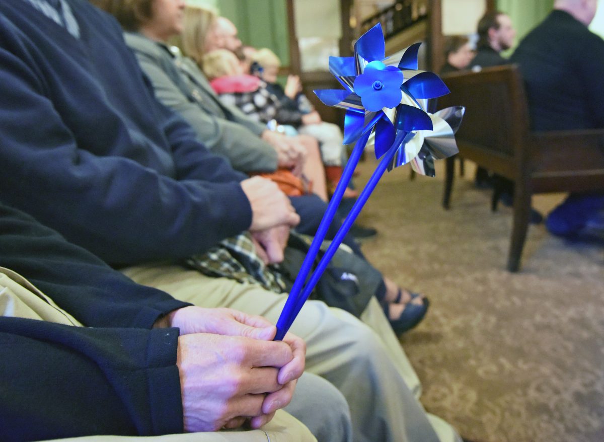 A volunteer to be sworn in holds a pinwheel, which signifies the abused and neglected children of Washington County.
