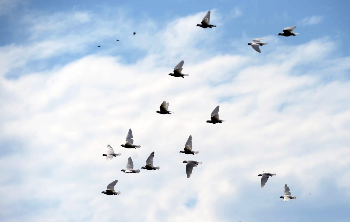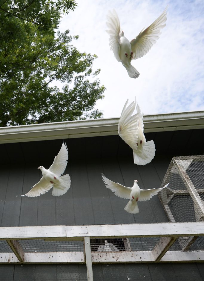 Homing doves – actually pigeons – take flight from their loft at Jerry Gagne’s home in Beaver Falls. Pigeons and doves make up the bird family Columbidae, which includes about 310 species.