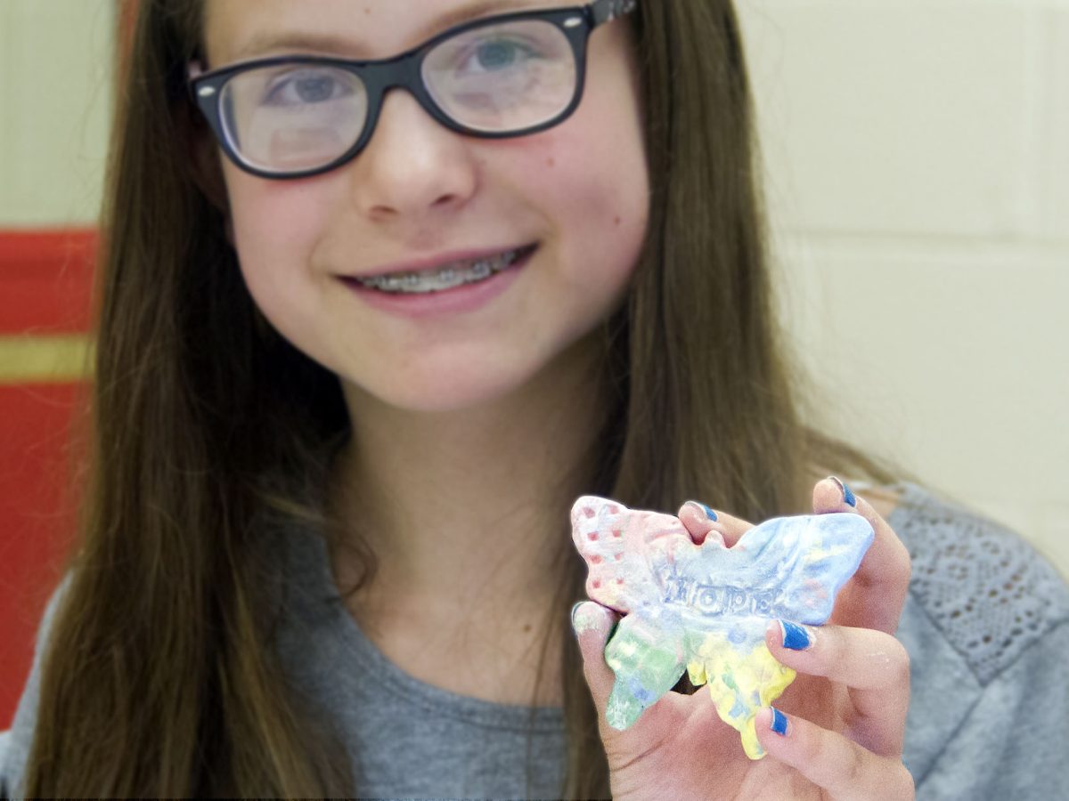 Briella Lucadamo has inscribed her butterfly with “hope.”