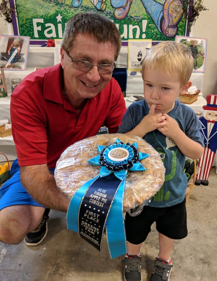 Lew Crouse of Sycamore, who took first place in the blue ribbon apple pie contest, is shown with his grandson, Levi Crouse.