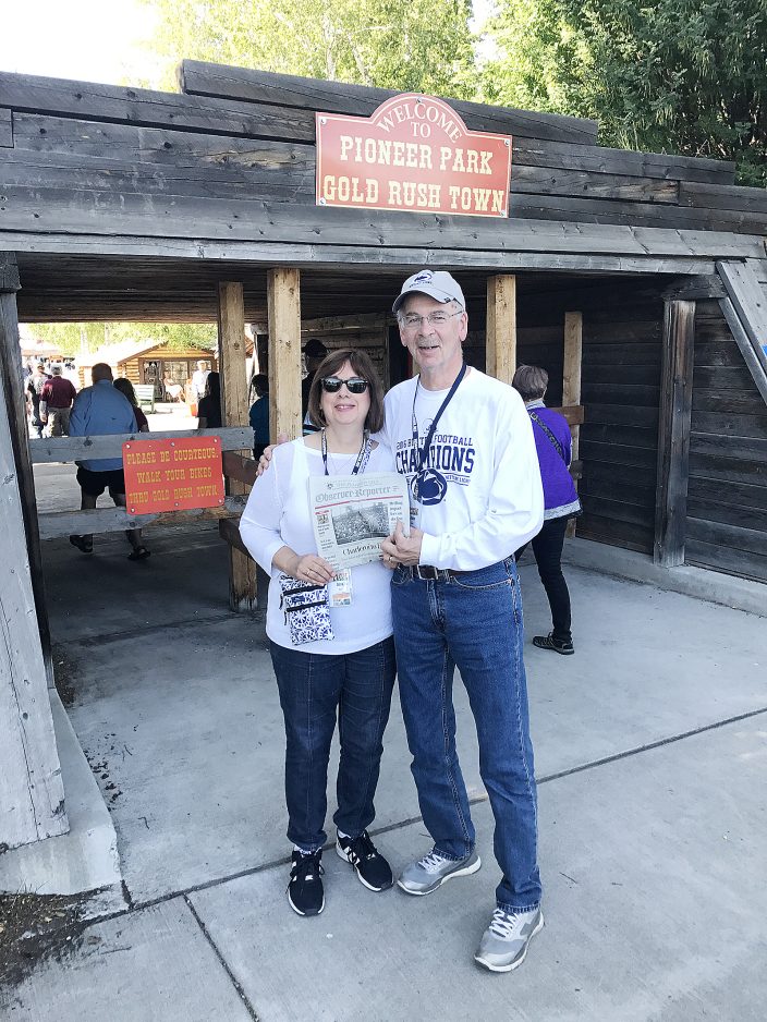 Ann Dean and John Hart of Millsboro took the O-R to Pioneer Park in Fairbanks, Alaska, where they were about to experience an authentic Alaskan salmon bake.