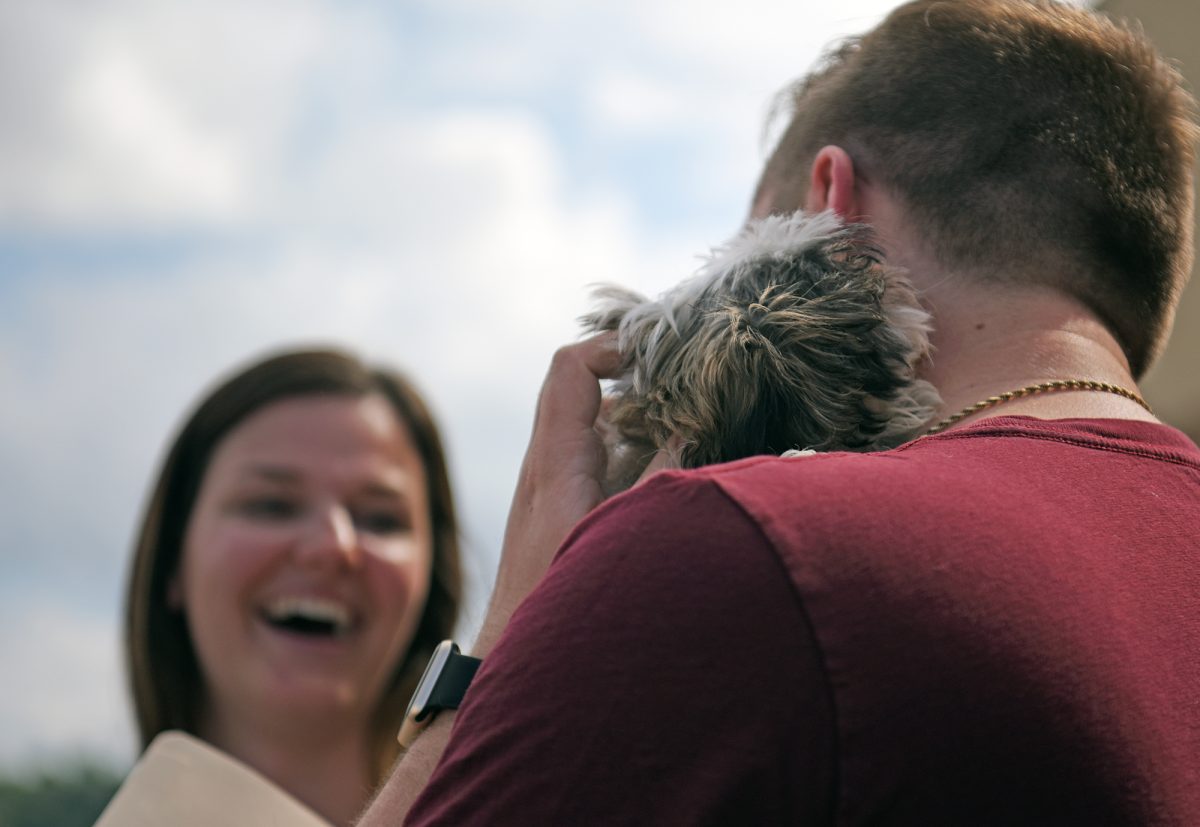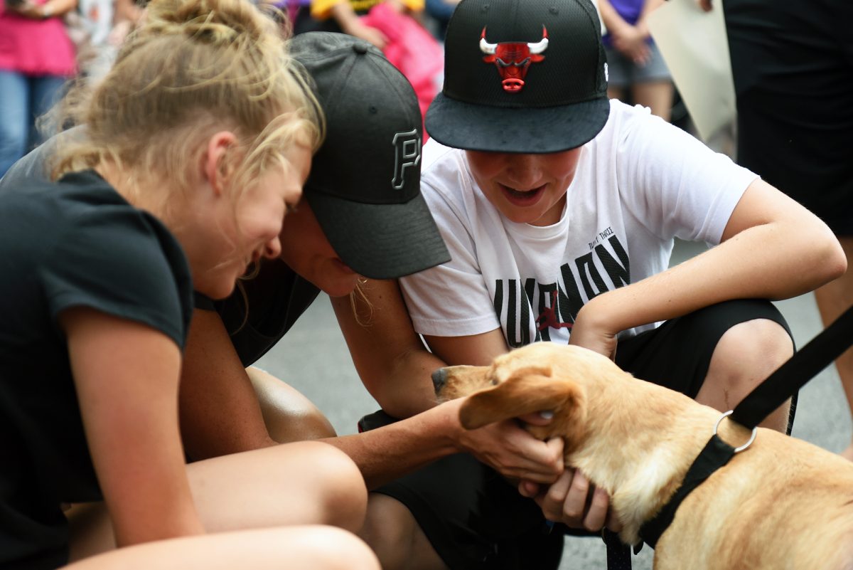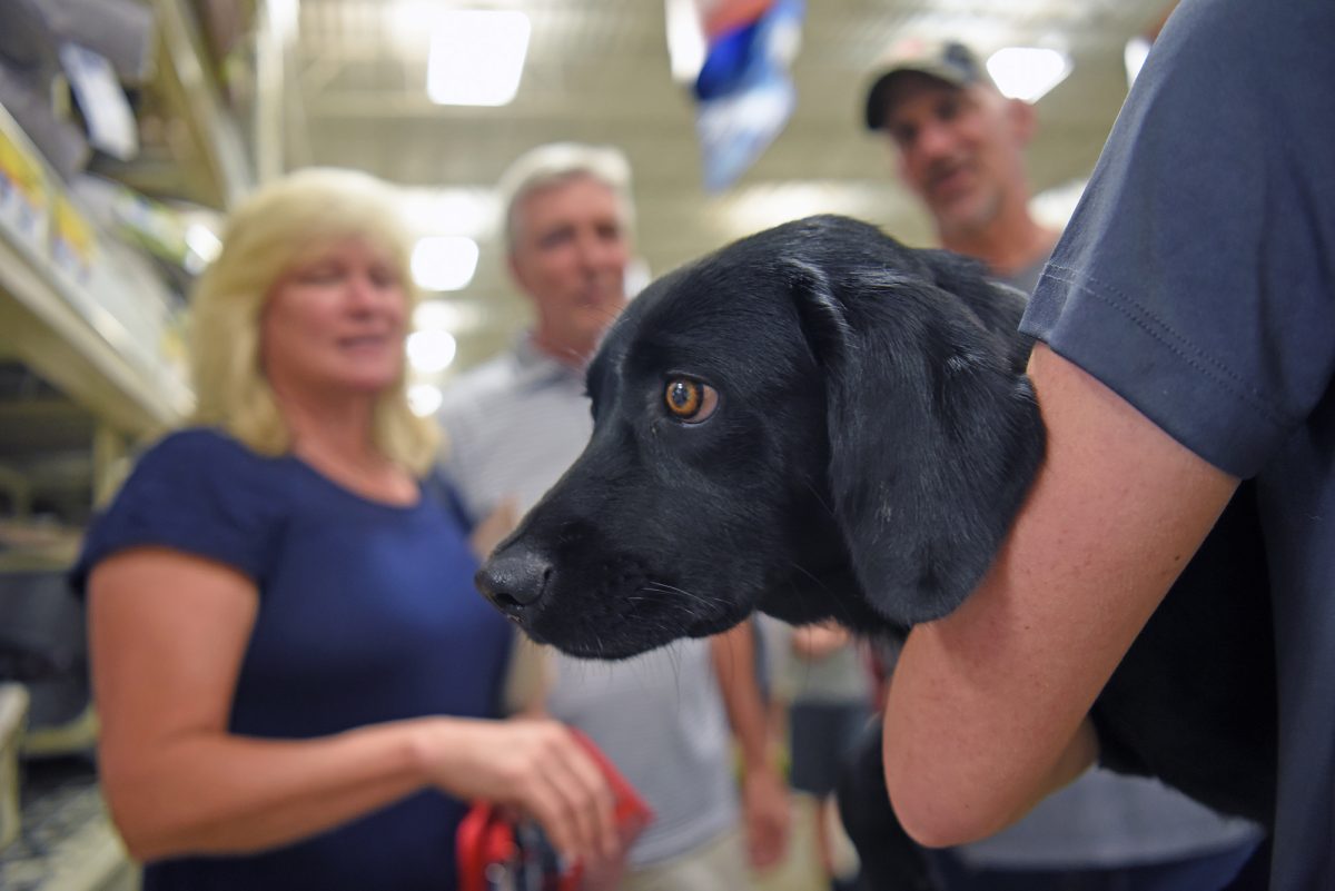 At the beginning of the event, Scott Whyatt – who’d led the group transporting the dogs from Texas – had been handing them off behind the store. Several heavy bouts of rain forced the crowd inside, and the Bigleys were near the end of the line.