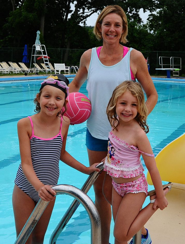 Jocelyn Vincent poses with two of her children, Dakotah, 7, and Savannah, 5, at the Valley Brook Country Club swimming pool.