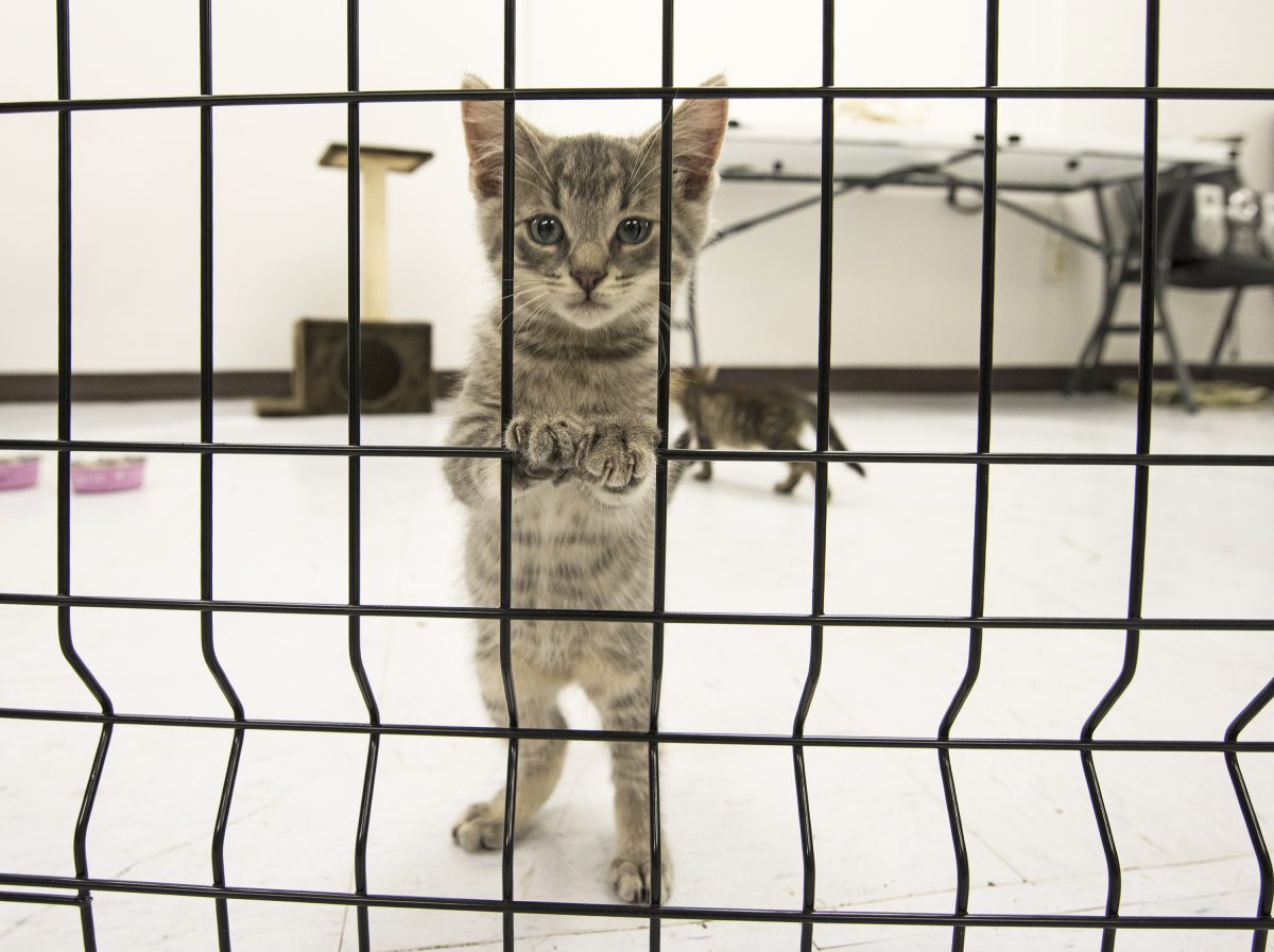 A small group of kittens that were rescued play in Fix ‘Ur Cat’s facilities.
