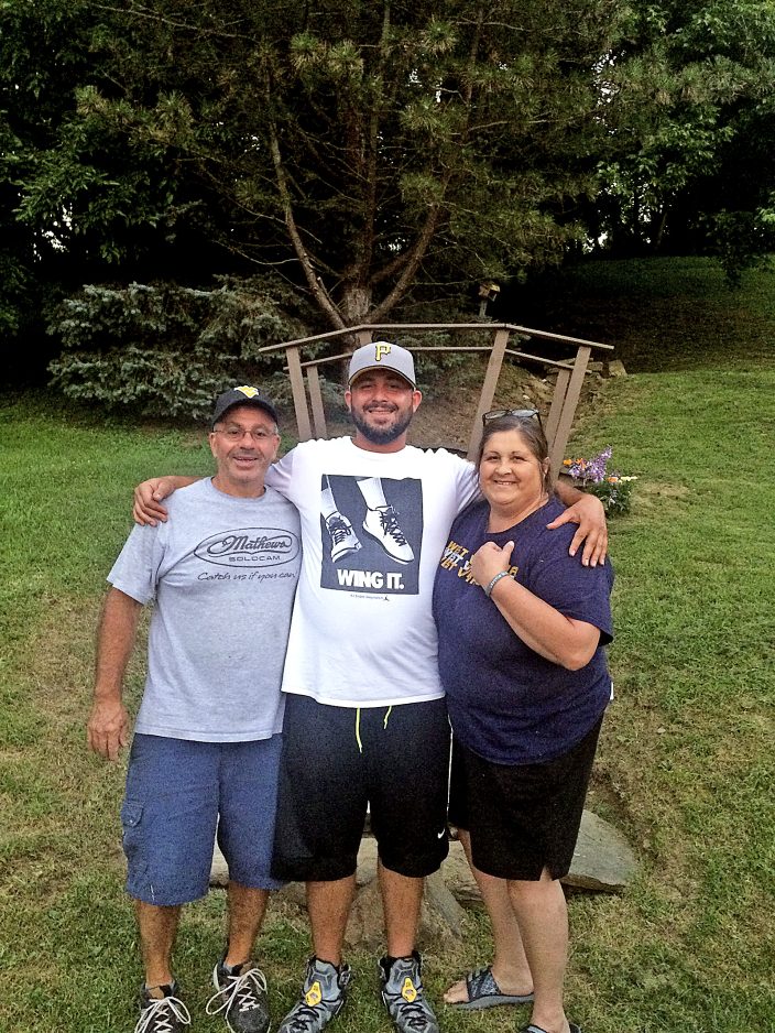 Demaske, center, with his parents, Nick and Robin Demaske