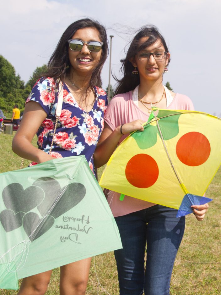 Khushi Kantawala of Scott Township and Krishna Shah of Green Tree take a break from flying their kites.