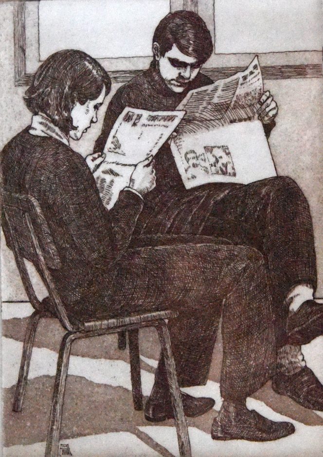 Burroughs’ work, “Readers” etching and aquatint
