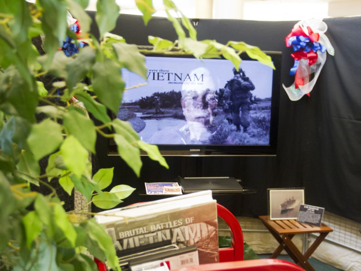 Throughout April, the library hosted a display for the project featuring a lookalike bunker, decorated by students in the Peters Township High School Art Club, inside of which the videos played on a television screen.