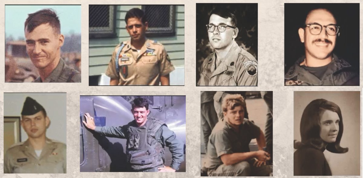 Featured on video are: top, from left, Richard Gotch, adviser, U.S. Military Assistance Command, Vietnam; Ron Worstell, light weapons infantryman; Jim McNutt, U.S. Army News correspondent; Dr. Peter Bonadio, Medical Corps. Bottom: George Dvorznak, commander, 229th Supply and Service Company; Jim Puhala, helicopter pilot, 1st Cavalry Division; Judge Mike McCarthy, Navy Seabee; and Patricia Fink, who speaks from the civilian’s perspective about the Vietnam War.
