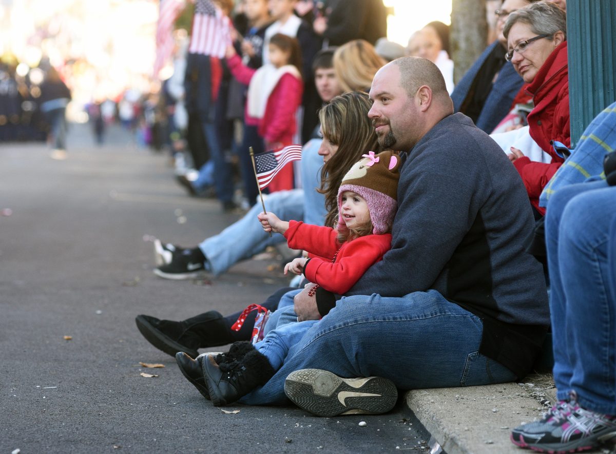 In this file photo, Gary Schade of Donora holds his daughter, Emma, as they watch the 2016 Veterans Day Parade in Donora.