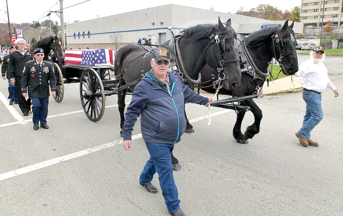 Claysville American Legion Post 639’s antique black caisson was second in line Saturday at the Mon Valley Veterans Day parade in Monessen.