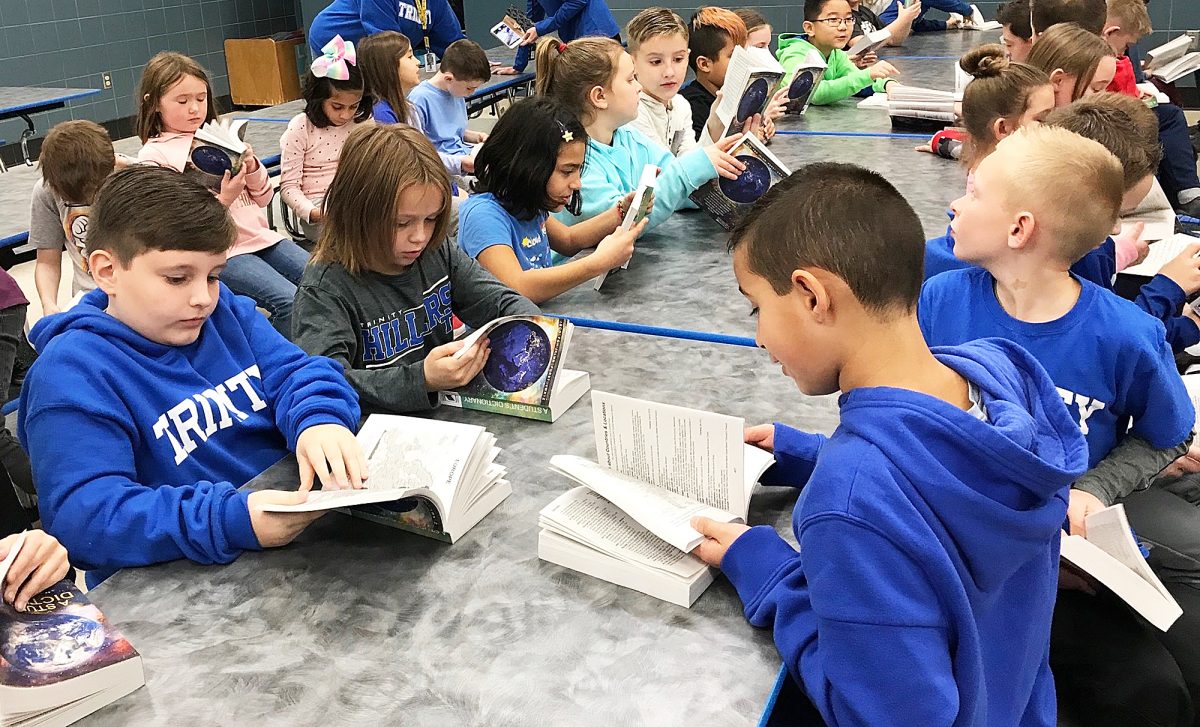 The Rotary Club of Washington presented dictionaries to third-graders at Trinity East Elementary School Nov. 9 as part of the service club’s literacy initiative. The club has distributed more than 9,700 dictionaries since the inception of the program. The club’s goal is to provide a dictionary to every third-grader in the Avella, Burgettstown, Fort Cherry, McGuffey, Trinity and Washington school districts, along with Faith Christian School in Washington. A few of the happy youngsters receiving dictionaries at Trinity East were, from left, Matthew Richards, Easton Dulaney, Teagan Barr and Cooper Meeks. All are students in Mitzi Chambers’ third-grade classroom.