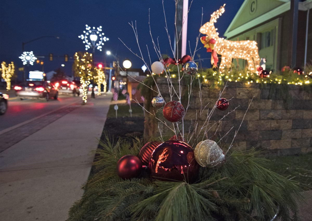 About 60 volunteers dressed the light poles in candy cane stripes, strung sparkling lights on the trees along Pike Street and filled the town planters with holiday decor. The committee asked business and home owners in the area to participate, and about 80 percent have decorated. Canon-McMillan High School art students helped paint business windows and create free-standing holiday statues.