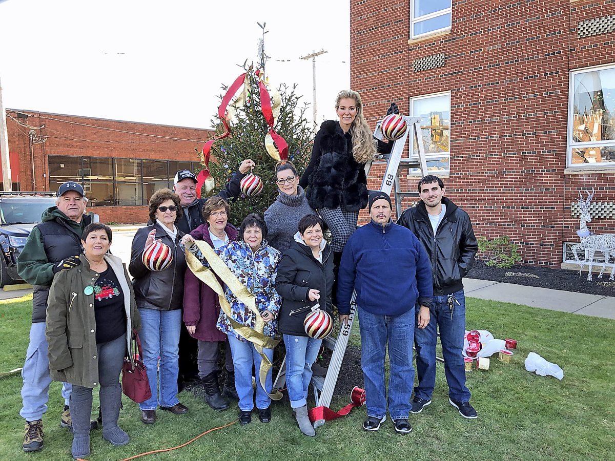 The Canonsburg Christmas committee puts the final touches on the tree in November 2018 in front of the borough building. From left are R.T. Bell, Sophia Bell, Carol Imperatore, Mayor David Rhome, Jean Scarsellato, Lonnie Flood, Lisa Scarmazzi, Kim Cecchine, John Severine, Christina May and EJ Kleckner.