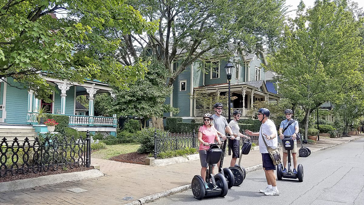 Tourists take a Segway tour of the historic Fourth Ward in Charlotte.