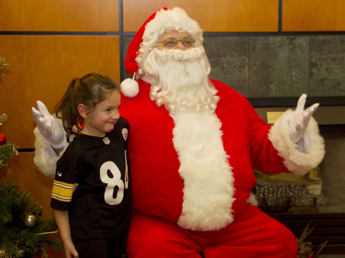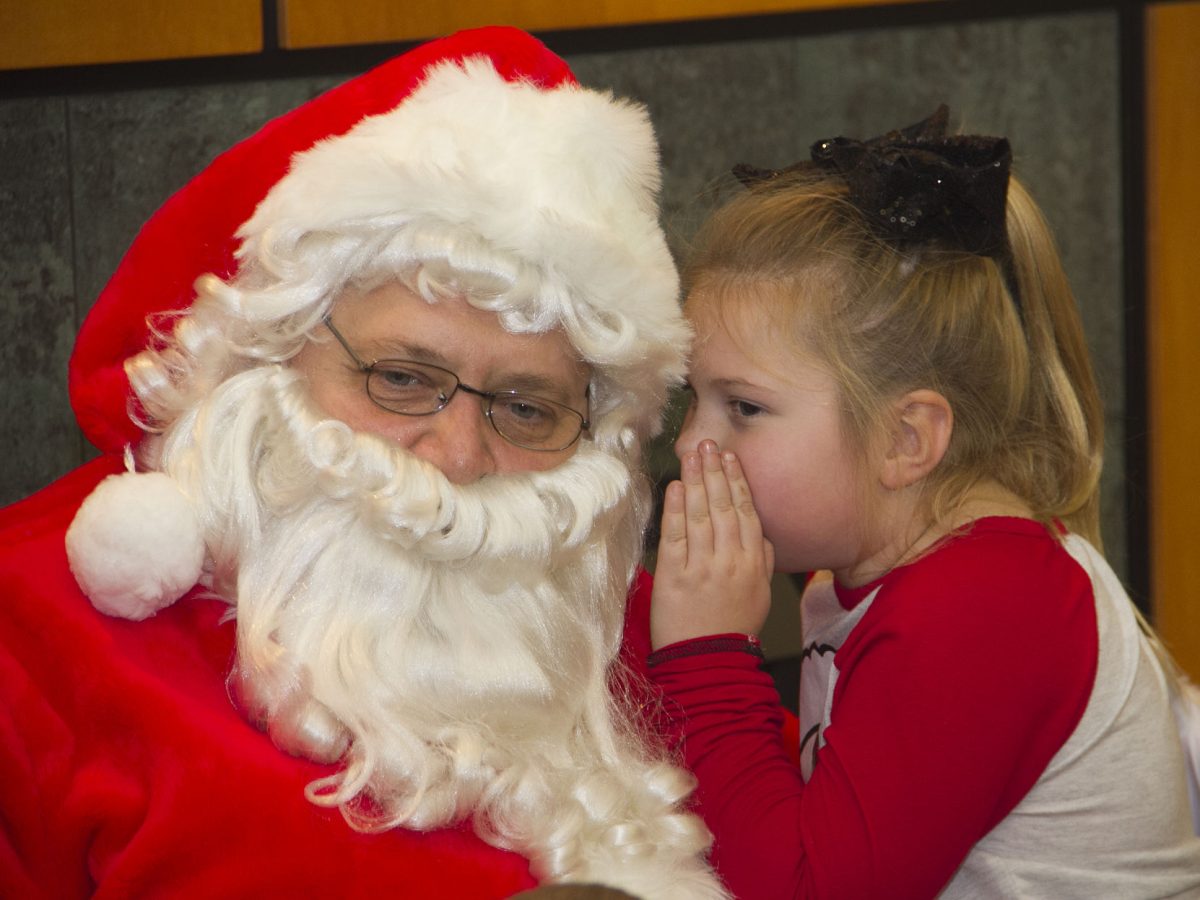 Maddie Stepanovich shares a secret request with Santa Claus during the Peters Township Tree Lighting event.