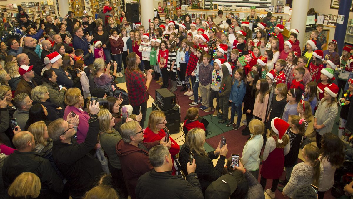 McMurray Elementary School students sing to a packed Peters Township Public Library.