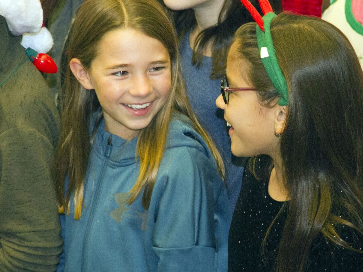 McMurray Elementary School students Emilie Angel, left, and Kylee Witmer chat before the start of the concert.