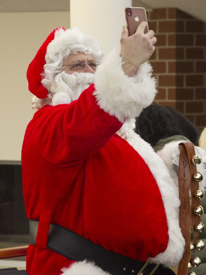 Santa takes a selfie shortly after his arrival at Peters Township Public Library.