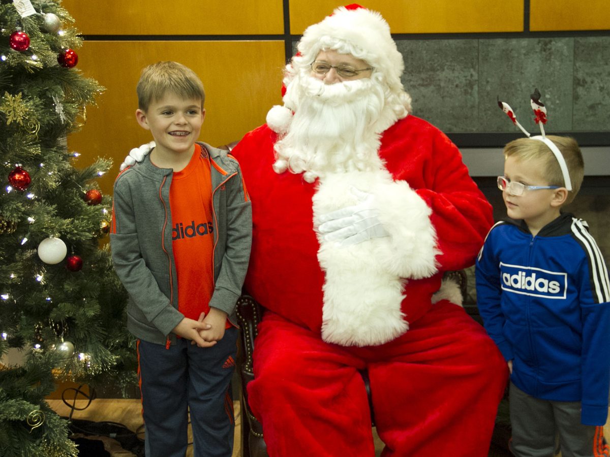 Santa Claus greets Atticus, left, and Rowan Silbaugh.