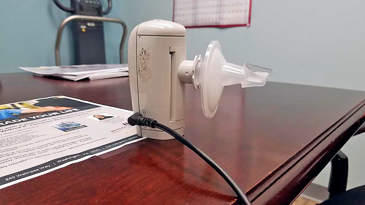 Kali Aloia, the nutrition coordinator with Washington Health System’s Wilfred R. Cameron Wellness Center, recently demonstrated a handheld machine that holds the secret to calculating a person’s daily calories.