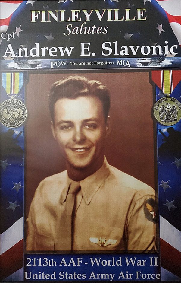 A flag that flew in Finleyville honors Andrew Slavonic’s military service.