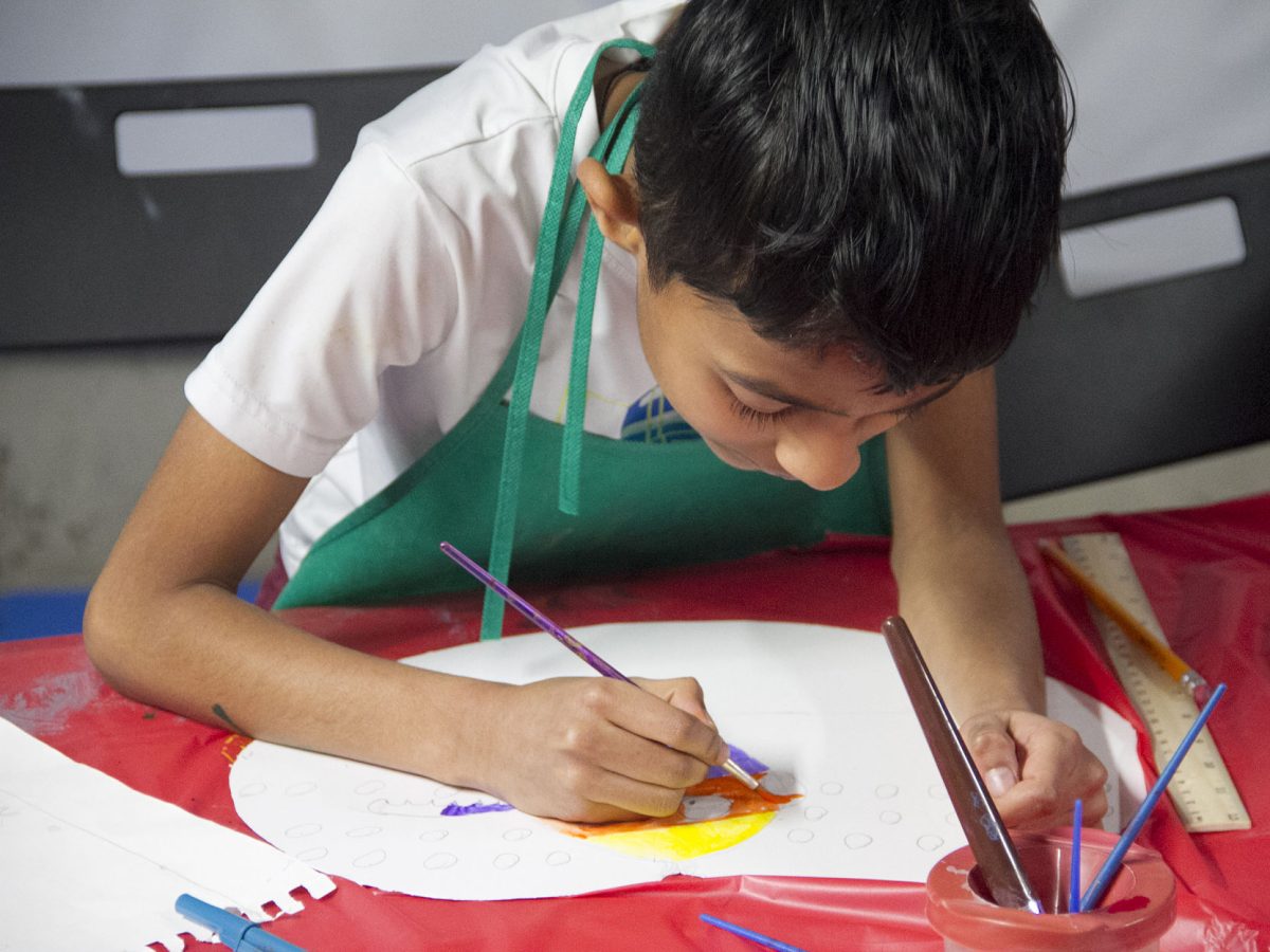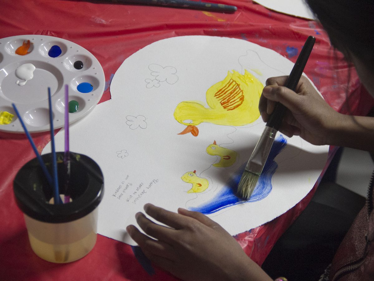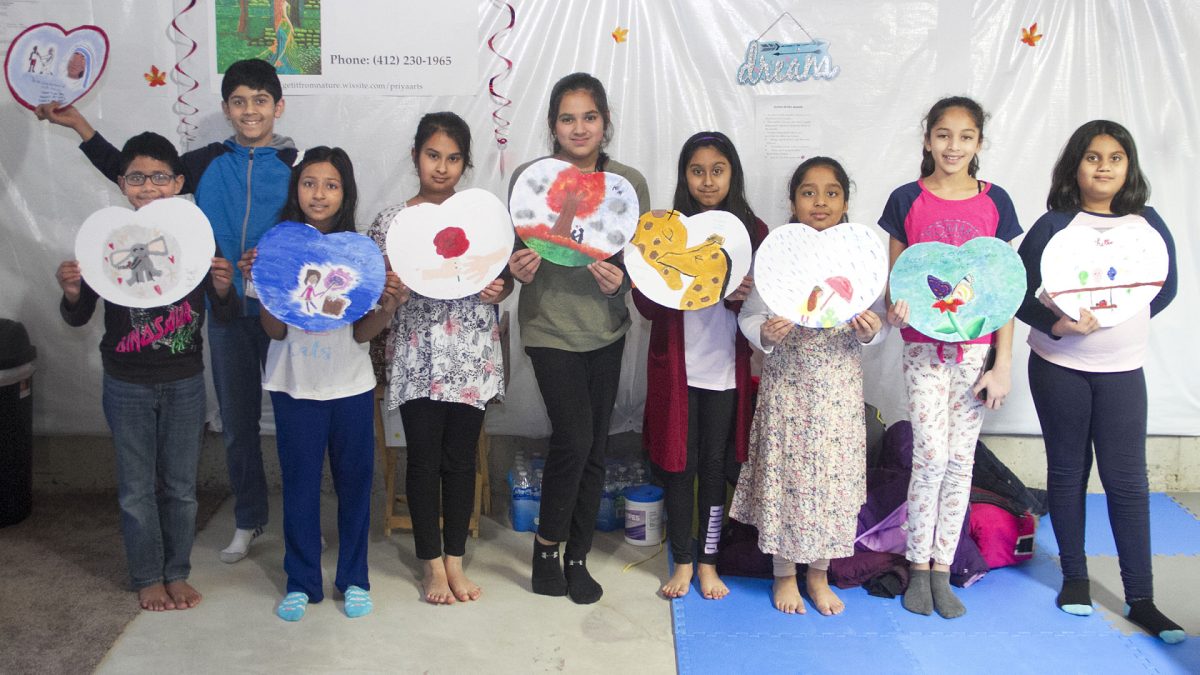 Students at Priya Arts have created heart-shaped messages of kindness to be made into an 8-by-8-foot banner for presentation to the facility in Shadyside.