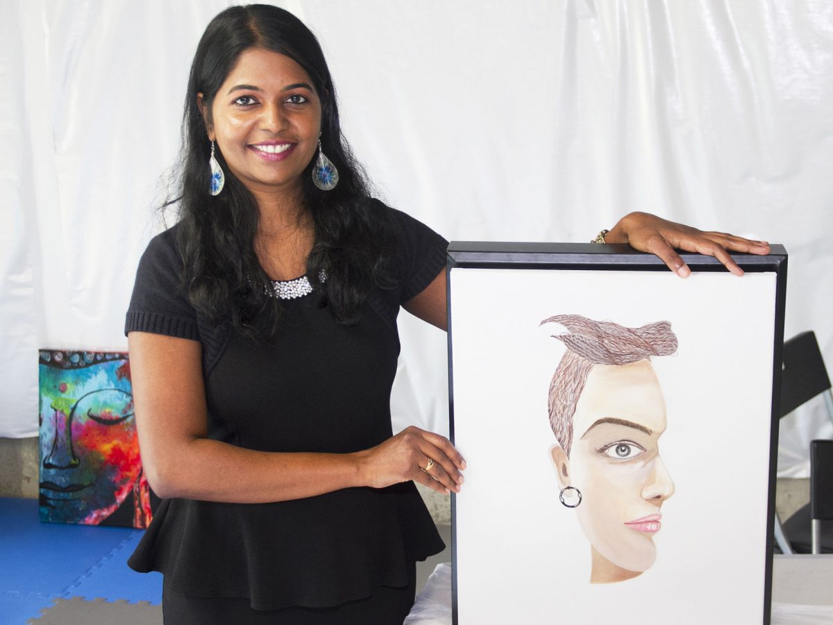 The South Fayette resident has been painting since she was 9, more prolifically when she was younger and less so when she started a career, got married and eventually was raising twins, Kavya and Oviya, now 8.