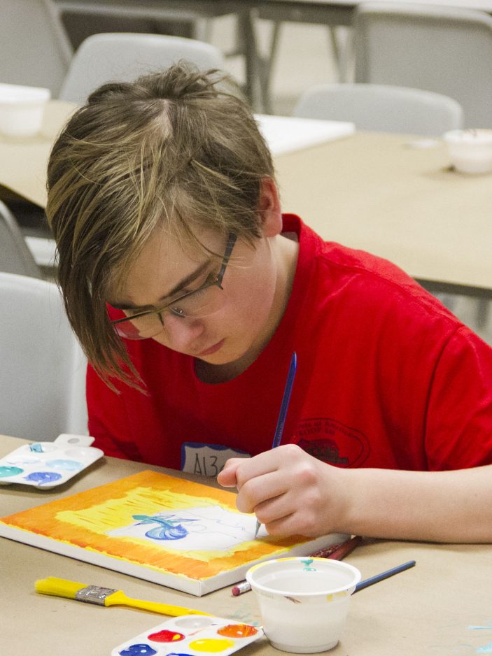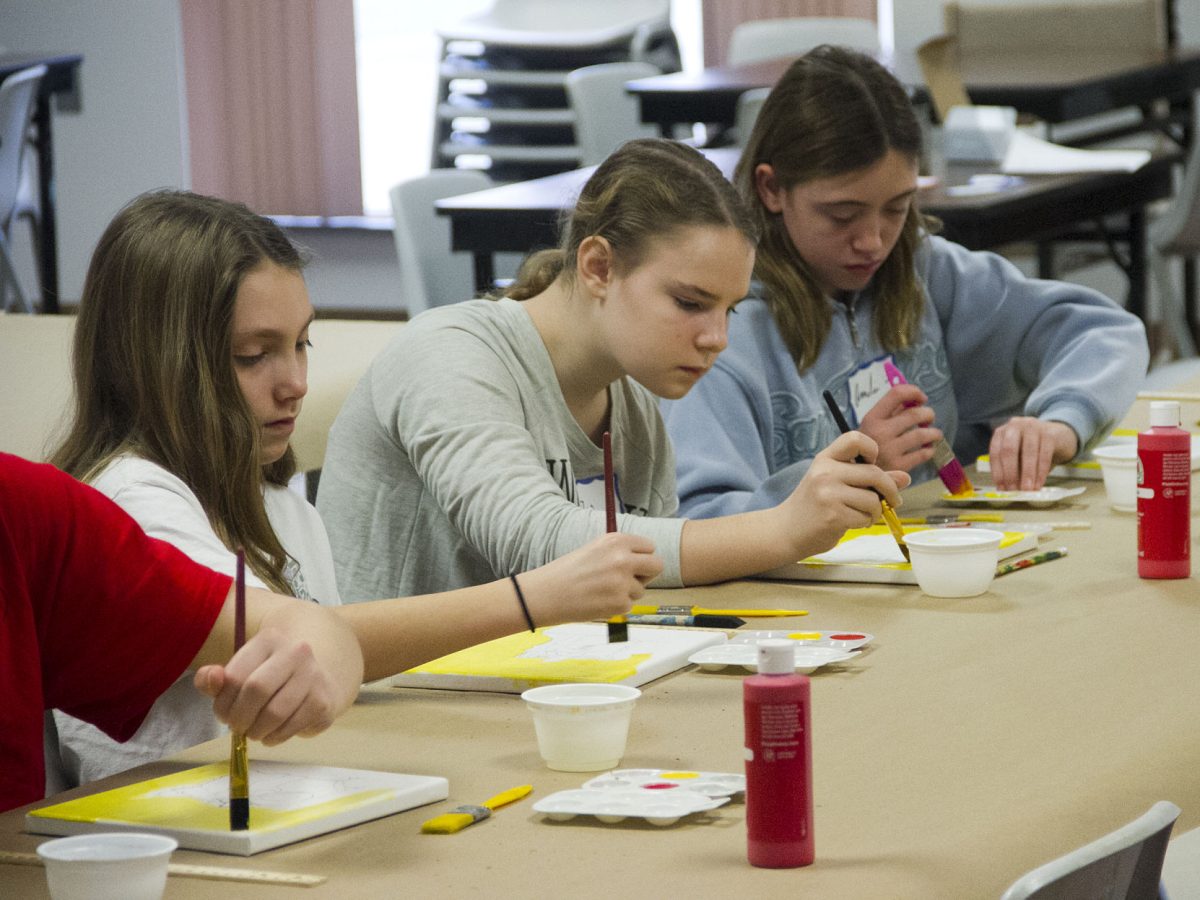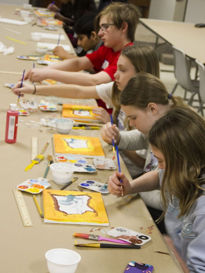 “We’re going to create a feel of depth with shadows and light in the painting, so that it looks like it’s not on a flat surface,” she told a group of youngsters recently at South Fayette Township Library. “It creates an embossed effect with all the shadows in it.”