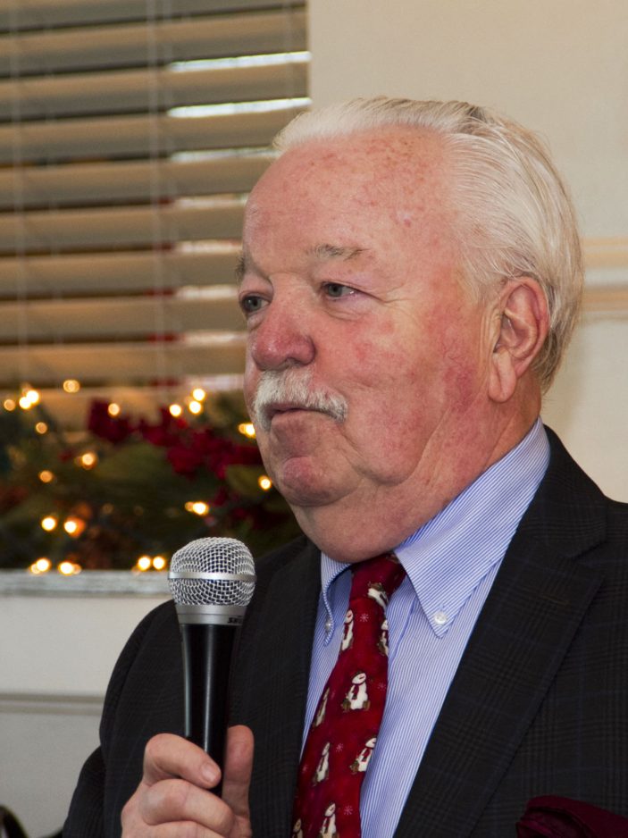 Jim O’Brien speaks during the Good Guys Luncheon series he hosts at Atria’s Restaurant in Peters Township. Rocky Bleier and Franco Harris both have been guests of the series.