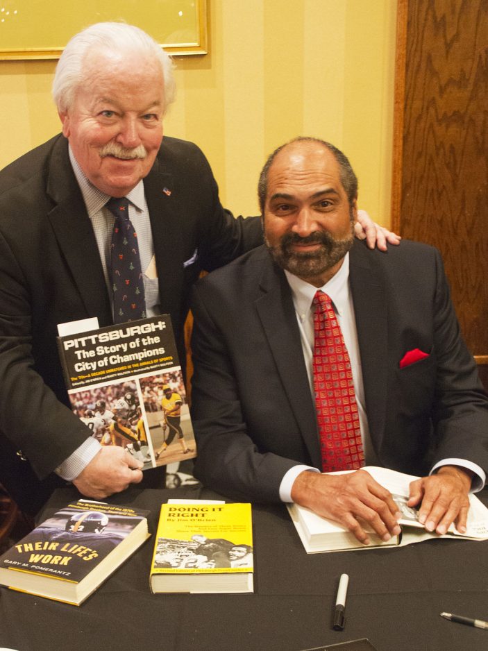 A longtime Upper St. Clair resident who now lives in North Strabane Township, O’Brien doesn’t shy away from addressing the bad with the good, such as the stories of players like Hall of Famer Mike Webster who took turns for the worse after their playing careers ended. The author even includes a necrology of former Steelers of the past half century who have passed away, including punter John Bruno, who succumbed to skin cancer at age 27.