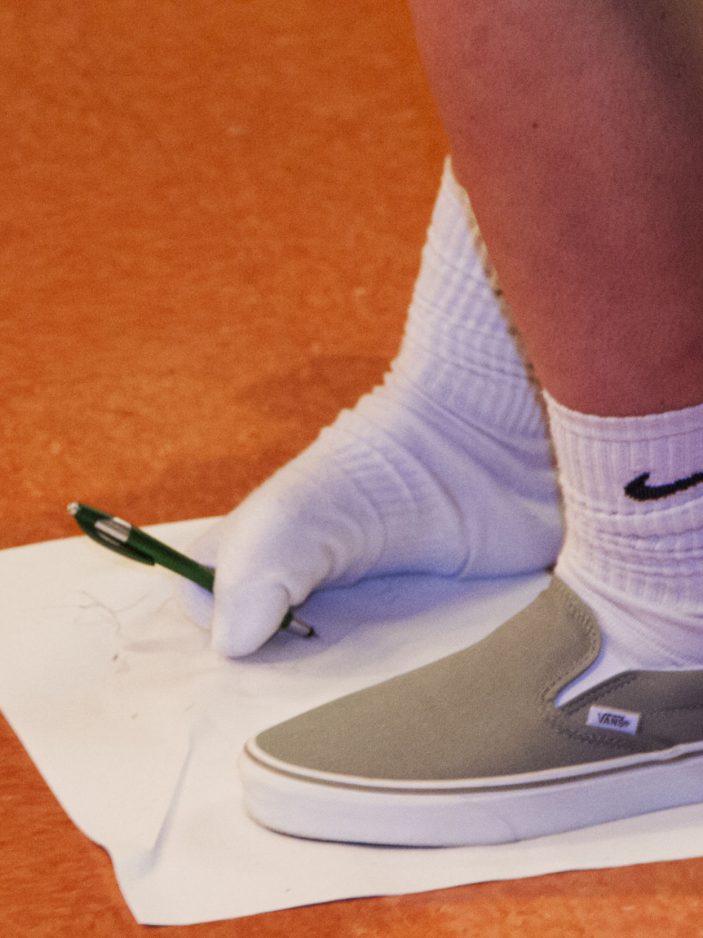 “I want you to try to write your names with your feet,” he told them.