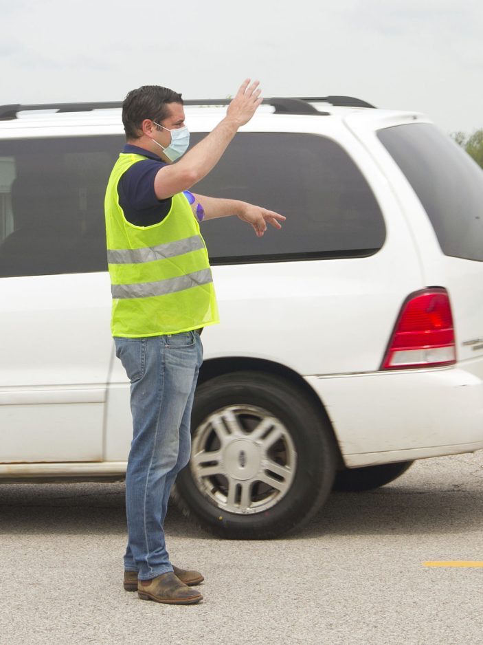 In an orderly manner, volunteers presented the occupants of more than 950 vehicles with three prepackaged boxes of food each, as a way to help families through the crisis caused by COVID-19.