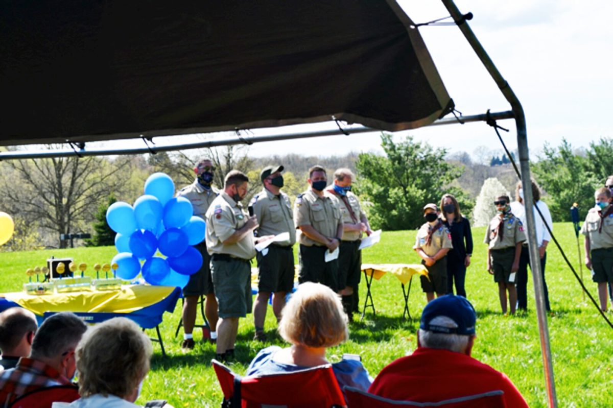 The large group of Scouts advancing is unusual, with a more typical “crossover” group numbering about five or six.