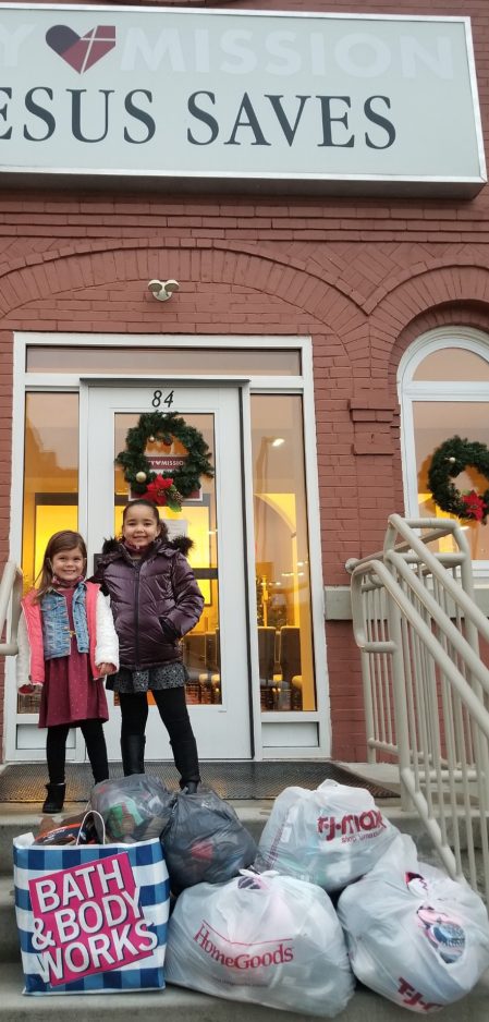 Adie Lieb, 4, and her cousin, Melia, 5, of Peters Township collected 625 pairs of new socks around Christmas time to donate to Washington City Mission.