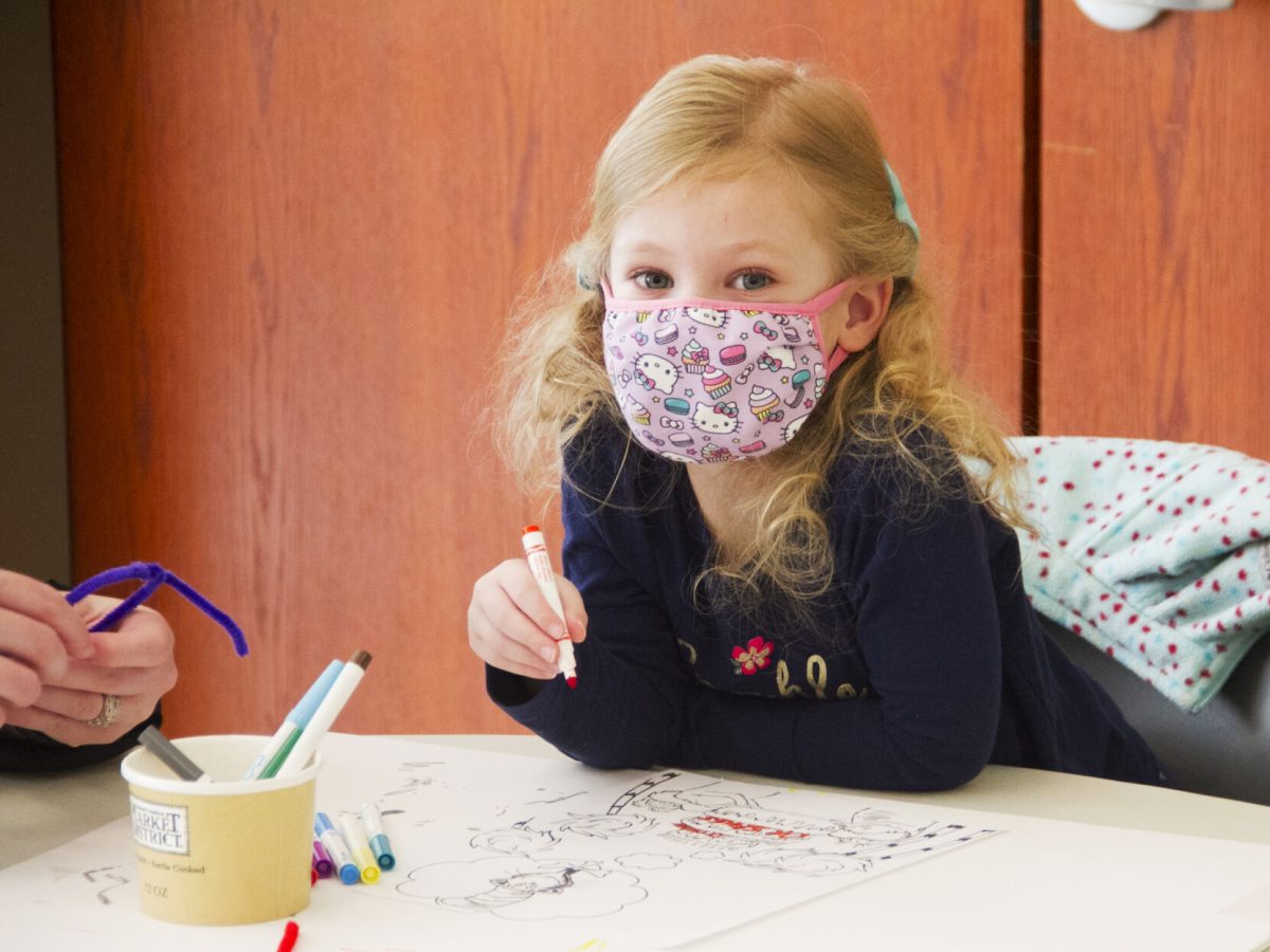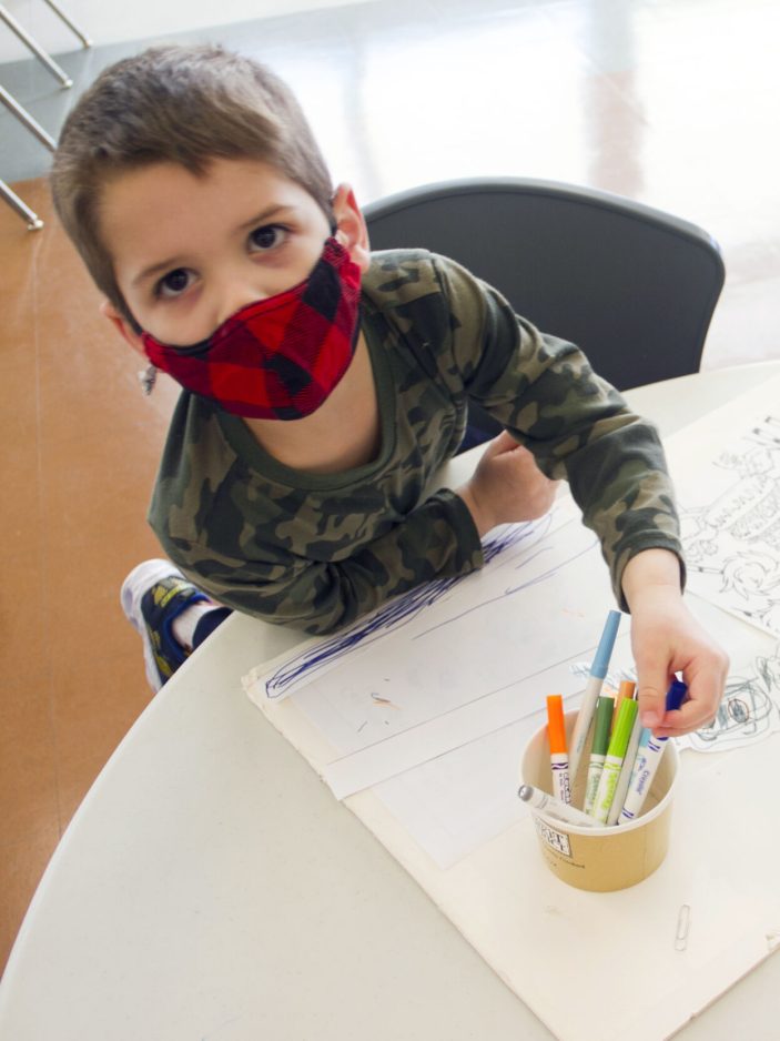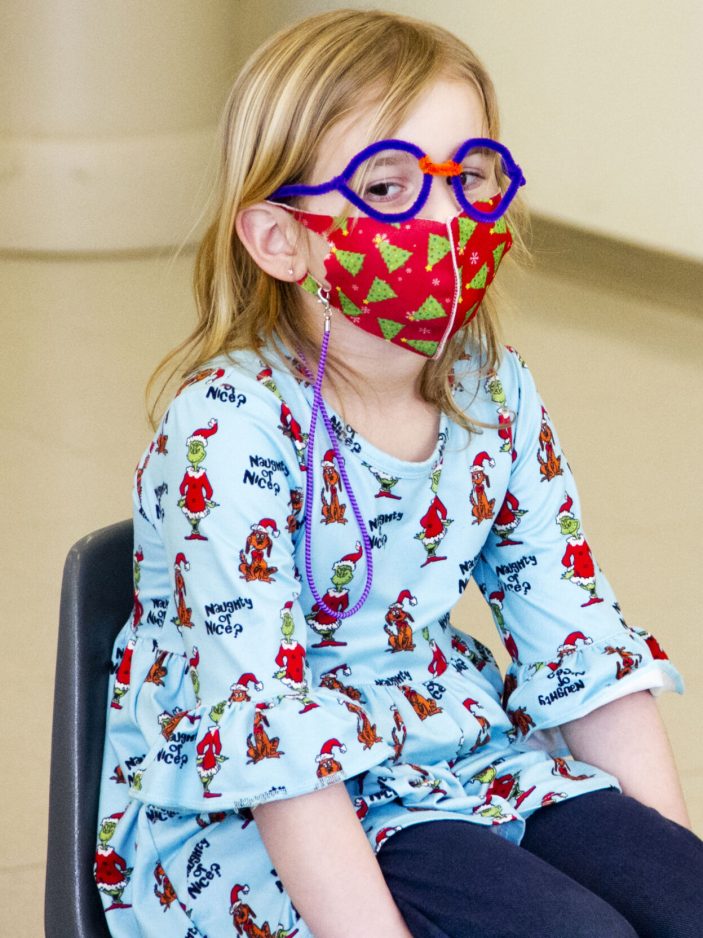 As the youngsters, all of whom were wearing masks of their own and remaining socially distanced, wrapped up their coloring projects, Werner handed out spectacles made from pipe cleaners as a prelude to him reading one of his favorite Dr. Seuss books to the children.