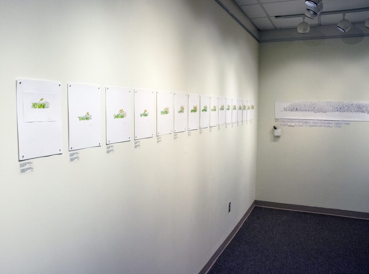 Those who attend the exhibit are invited to color a flower in memory of a loved one who died during the pandemic. A card will then be filled out for that person and placed under the work.