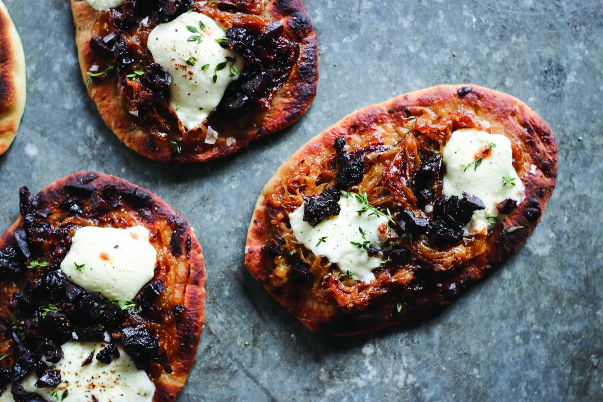 Caramelized Onion, Mozzarella, Prune and Thyme Flatbreads