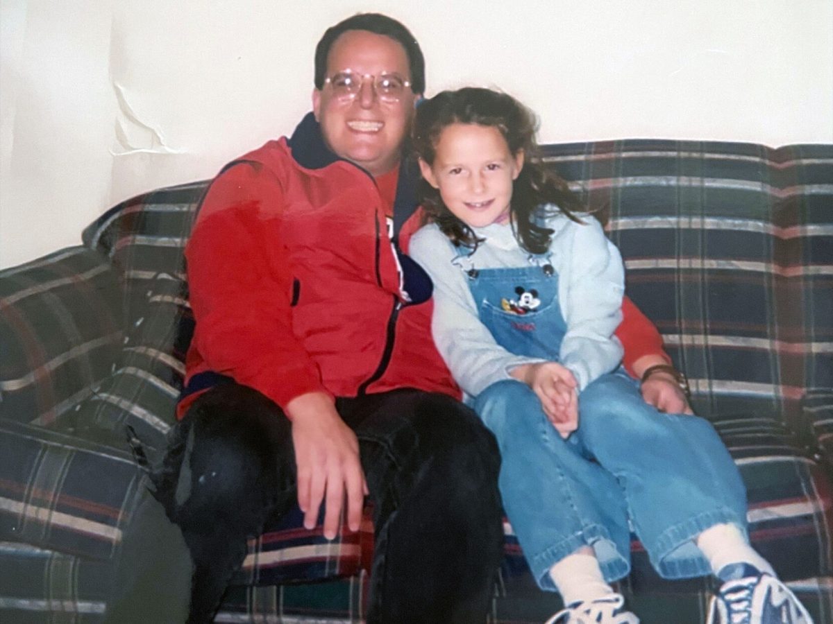 Young Hannah Weyrick sits with her father, Jeff, a couple of decades before her organ donation to him.