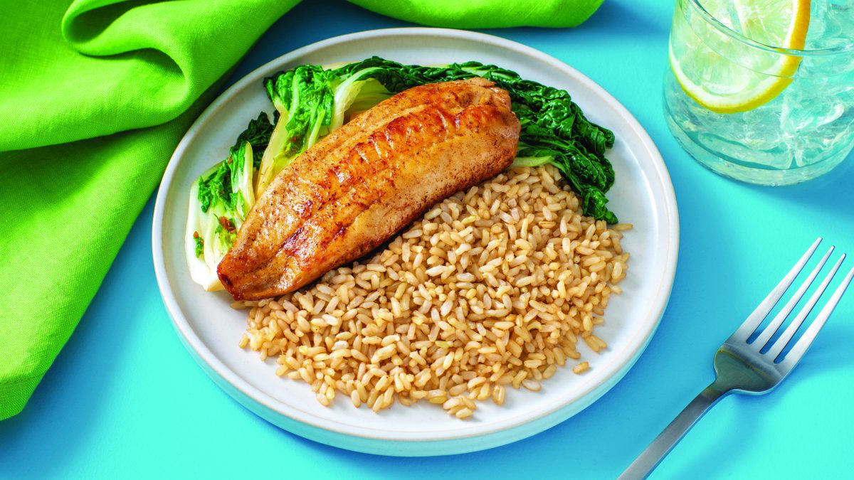 For example, this simple Fish with Bok Choy features plenty of complex flavors with flaky white fish, crisp bok choy and 100% whole-grain brown rice. The brown rice provides the ideal texture for the ginger, sesame and nutty notes in this dish, and the whole recipe can be on the table in 10 minutes. Because white fish fillets are neutral and mild, they absorb all the flavors from the dish, and are an ideal protein for those with busy schedules due to their short cooking time.
