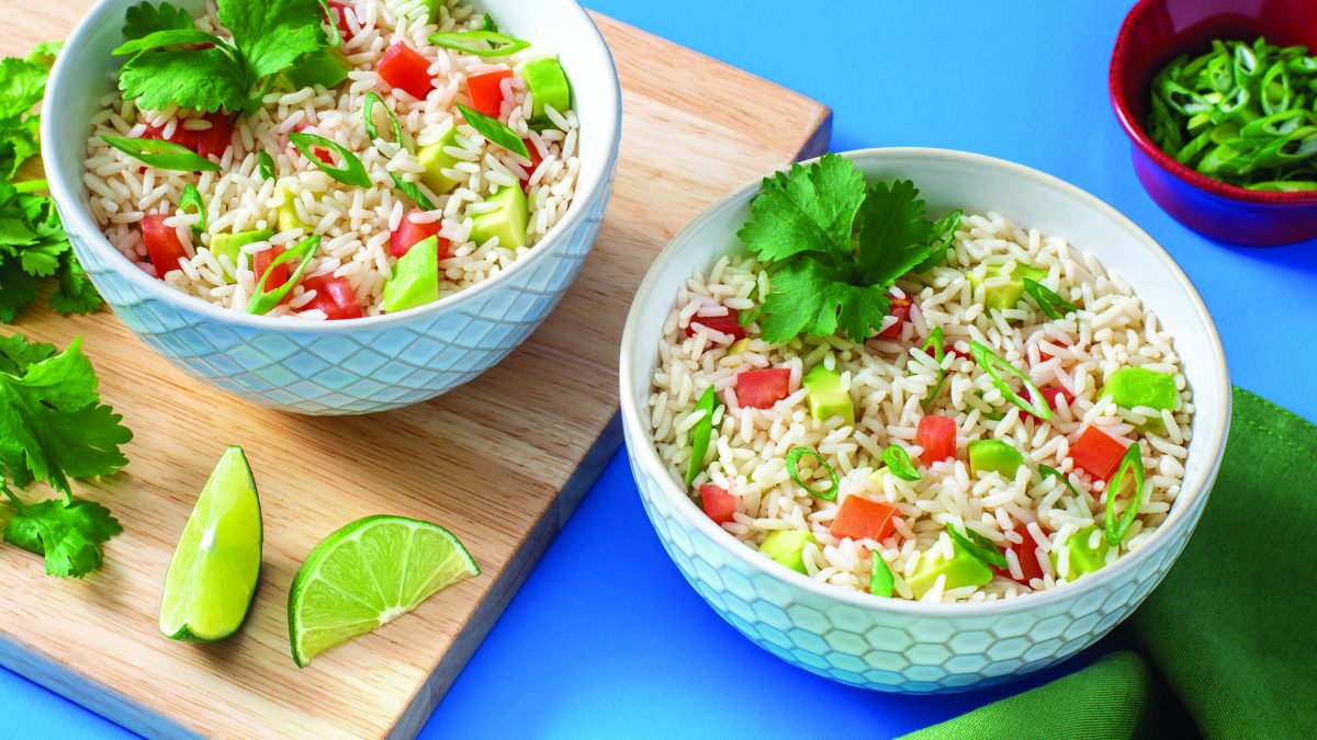 Or, bursting with colors and flavors, this Fiesta Rice satisfies fresh cravings with an irresistible combo of white rice, tomatoes, green onions and creamy avocado. Ready in less than 5 minutes, this dish can also be customized with a different grain variety or extra juicy, sweet cherry tomatoes in place of diced tomatoes. To make this satisfying side a complete meal, simply add grilled chicken or your favorite protein.