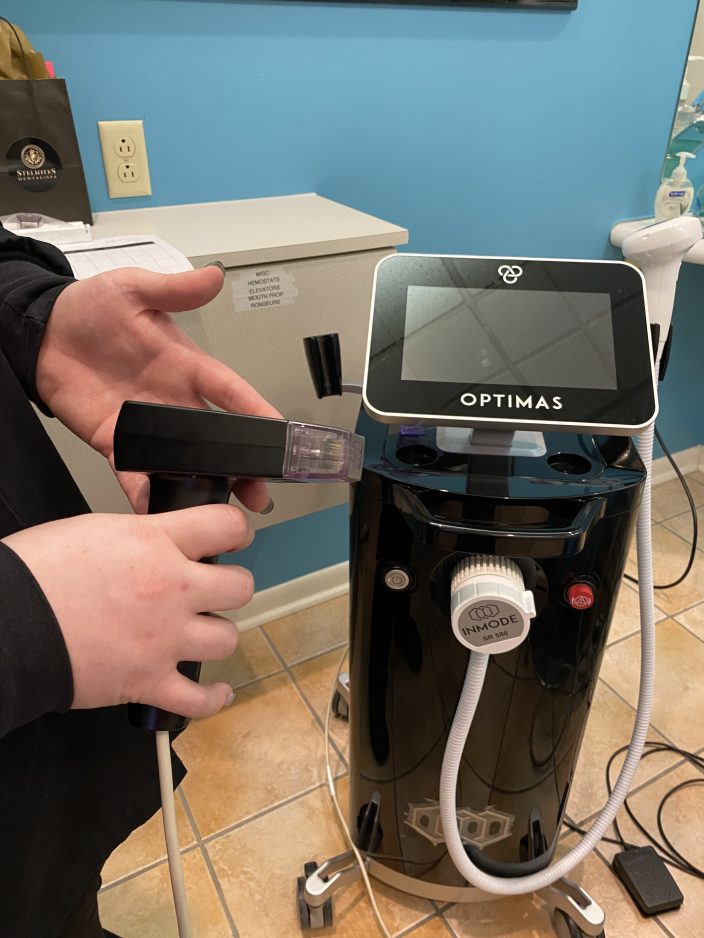“You’re gently wounding the skin. What’s nice is the 24 microneedles are communicating energy between each tip,” explains Dr. Ted Steliotes of Steliotes Dental Spa in McMurray. “We wound the skin just below the surface so it’s creating collagen and elastin, histamines come in and it heals the tissue. While it’s doing that, it’s tightening over time. You can imagine like aerating soil or how spikes on golf shoes puncture the soil. There are tiny little holes that have to fill in, and it will lift and tighten. It’s actually creating your own collagen, awakening your own collagen.”