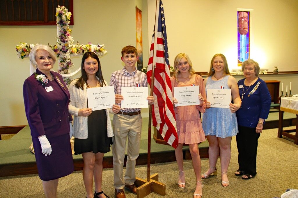 Youth Citizenship winners were selected on the DAR qualifications of honor, service, patriotism, courage, and leadership as observed and evaluated by social studies department of their school. Eighth-grade winners received a medal and certificate.