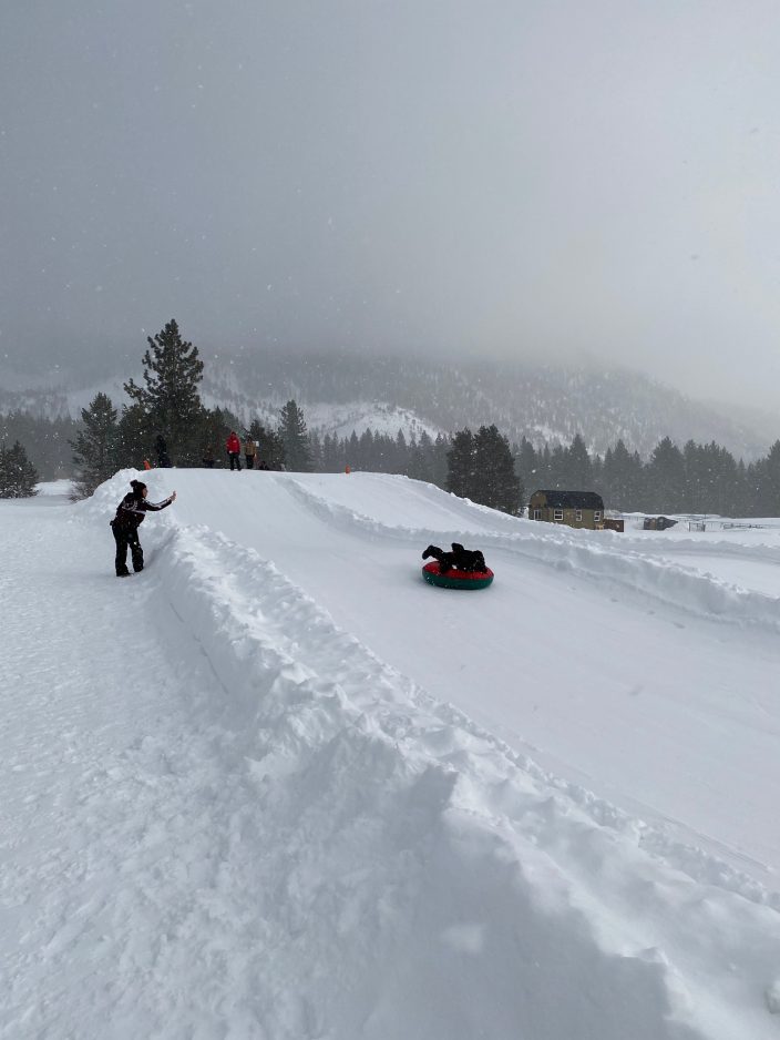 When my legs needed a break from skiing the powder, we found fun activities off the slopes. Several spots offer snow tubing, and we had fun flying down the runs at Tahoe Snowmobile’s Stateline tubing location. It’s not as affordable as tubing at resorts here at home, and you’ll have to tote your tube back up the hill yourself since there’s no rope tow, but it’s still a fun way to spend a few hours in the sunshine.